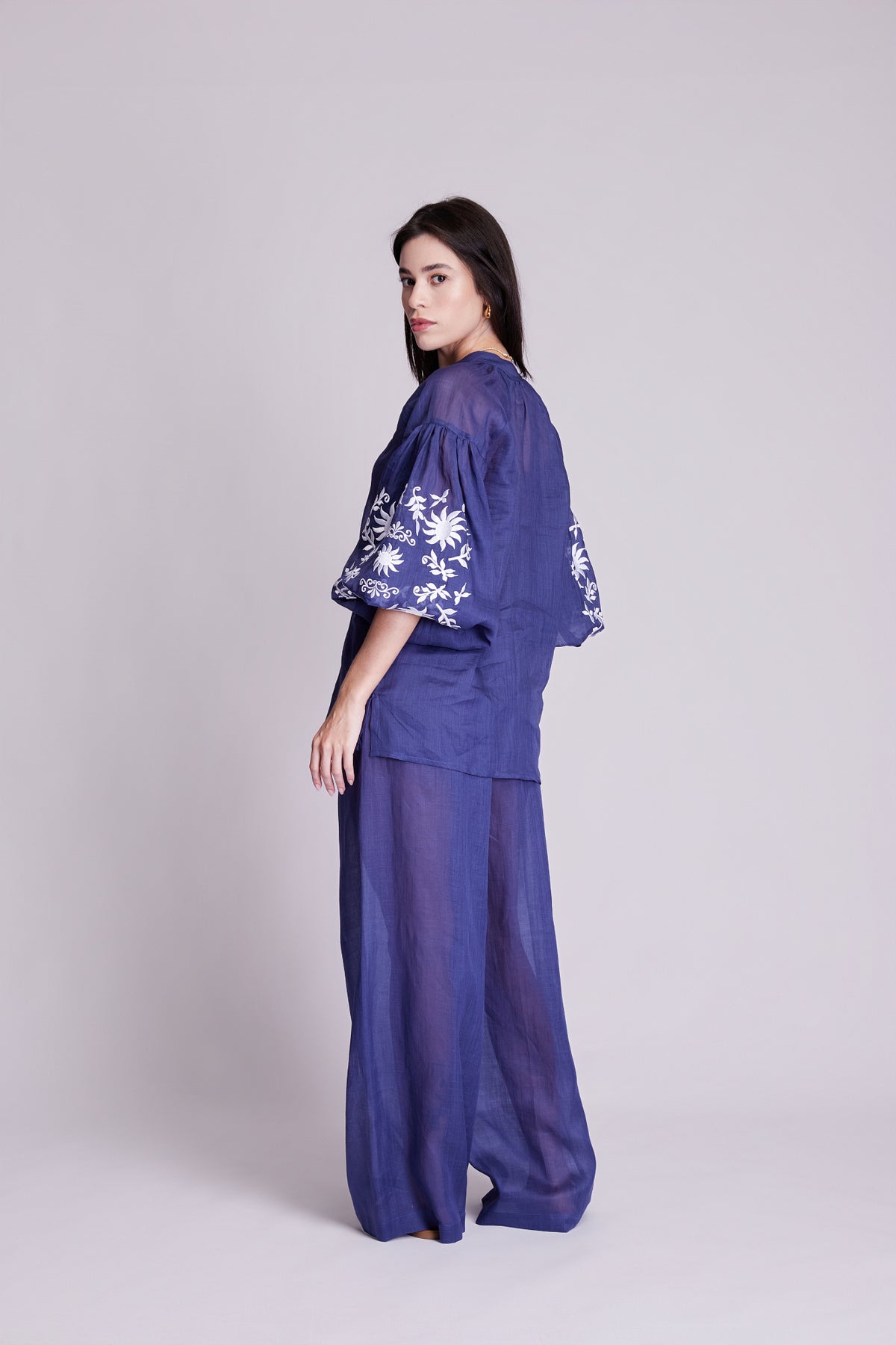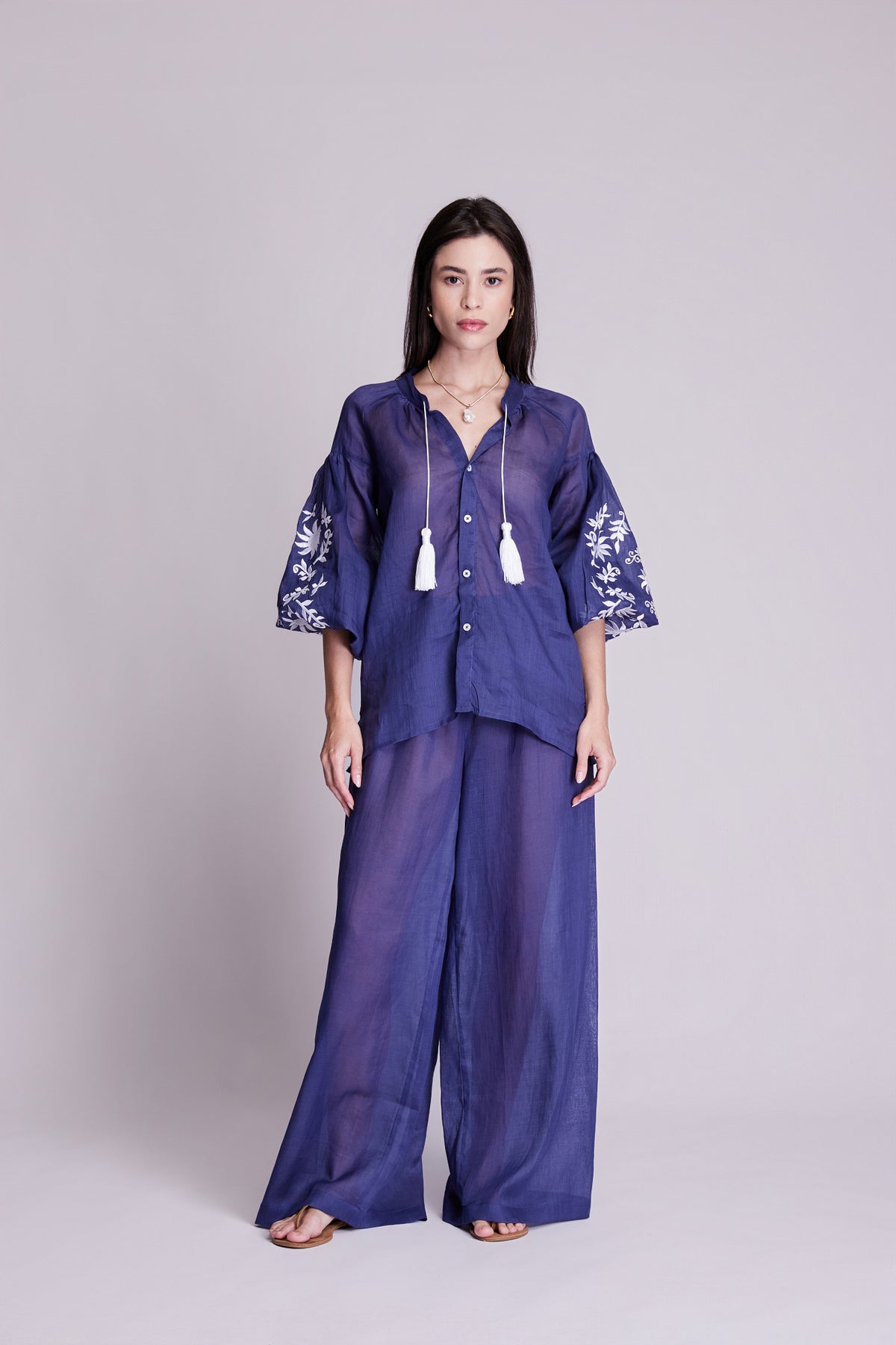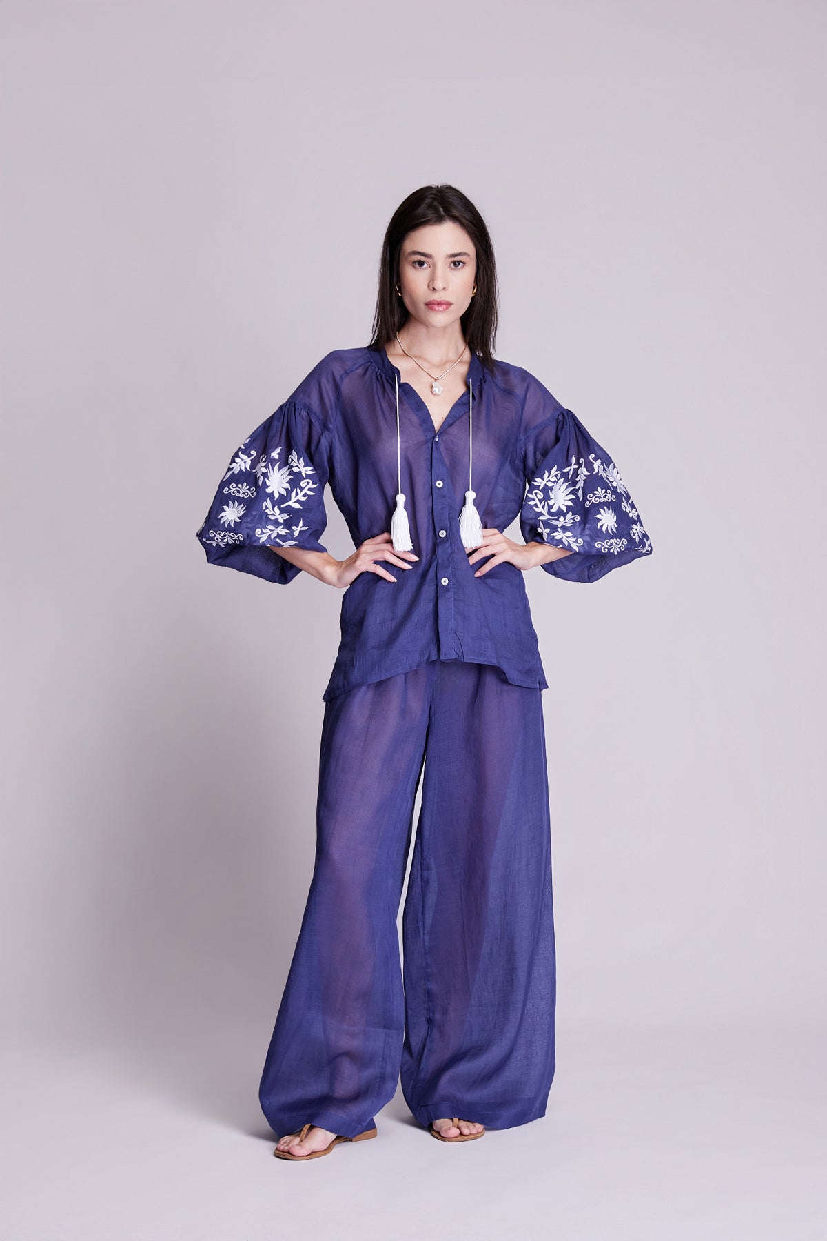 A Calça Afrodity, confeccionada em rami, traz leveza e movimento em uma modelagem pantalona fluida. O cós em elástico garante conforto e ajuste natural ao corpo, enquanto a leve transparência do tecido valoriza a delicadeza da fibra natural. Uma peça de caimento solto, com estética artesanal e sofisticada, fiel à essência da Sohoostyle.