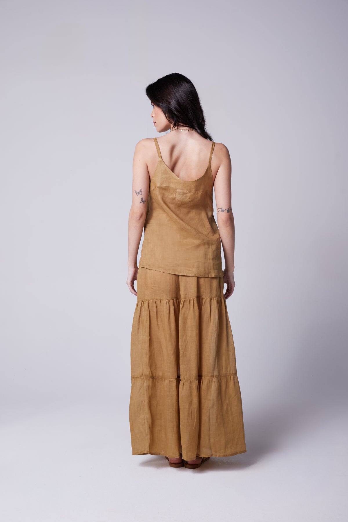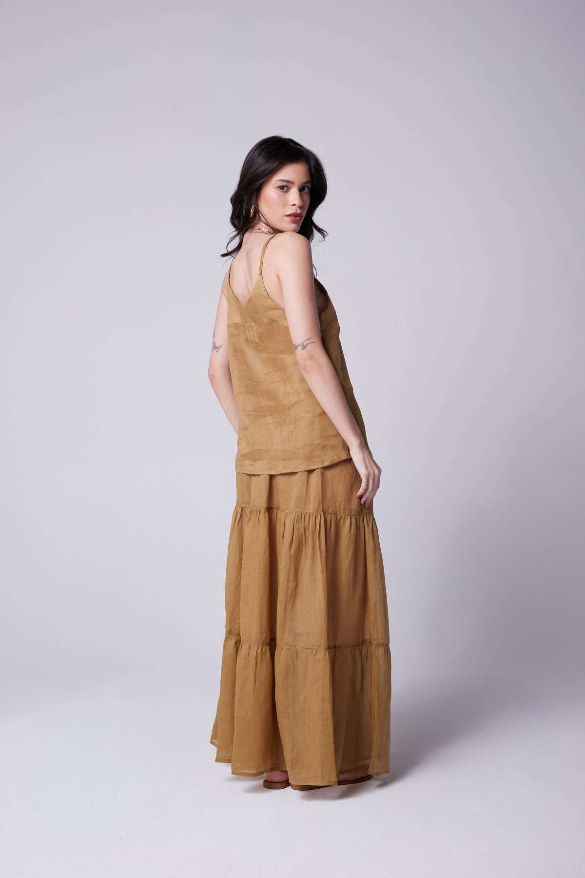 Com modelagem soltinha e alças finas, proporciona conforto e liberdade de movimento, tornando-se perfeita para dias ensolarados ou composições festivas à beira-mar. Combine a regata com a saia ou calça da mesma coleção para um conjunto harmônico e elegante.