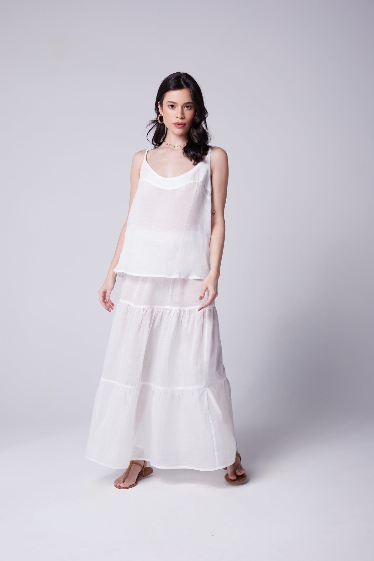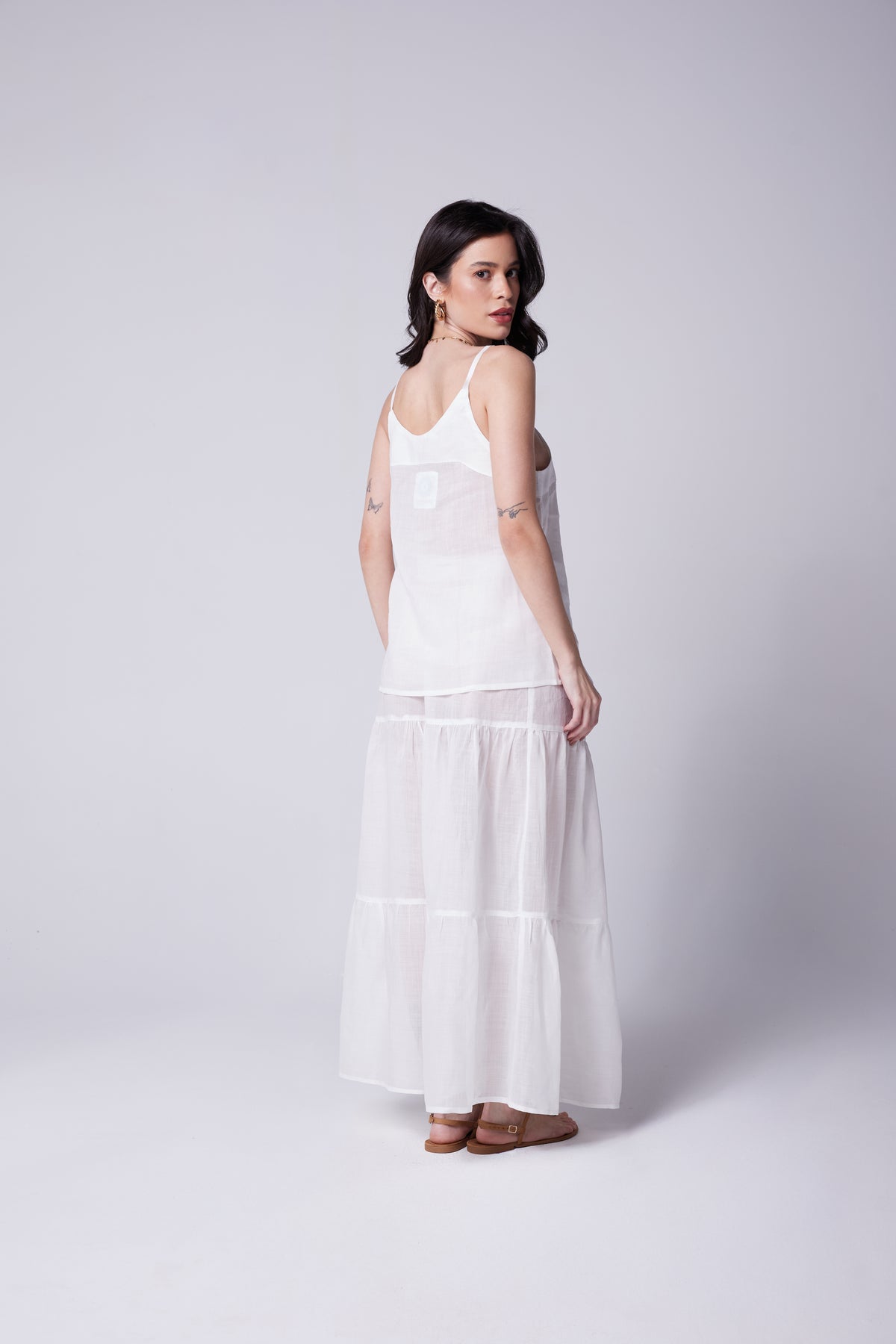 Ideal para dias de praia, pode ser usada como saída ou em composições festivas à beira-mar. Combine a saia com a regata ou bata da mesma coleção!