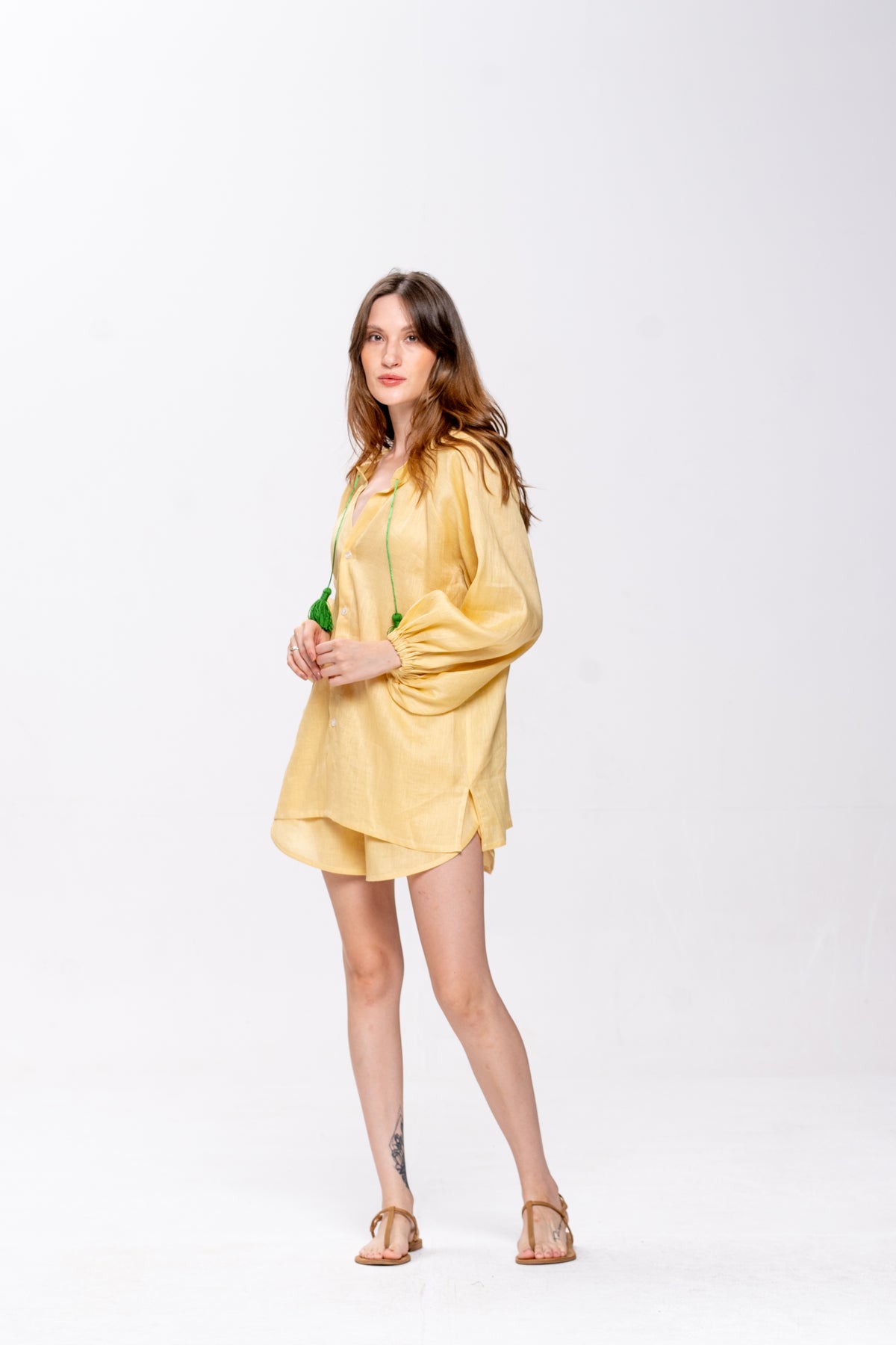 Shorts Boxer Sohoo Linho Amarelo Manteiga