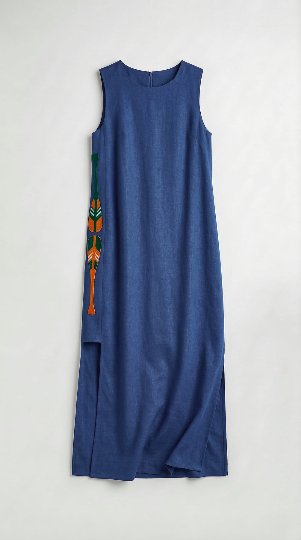 Vestido longo em modelagem reta, com caimento leve e elegante que valoriza a silhueta de forma natural. Confeccionado em linho misto de toque suave, traz decote arredondado e cavas amplas, proporcionando conforto e frescor ao vestir.