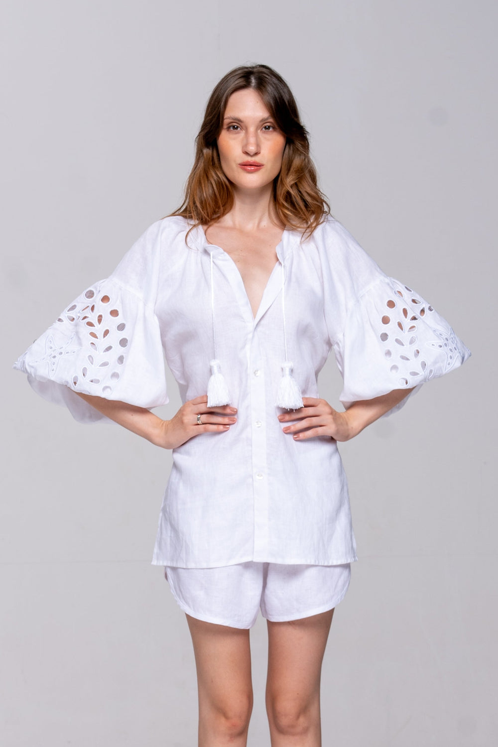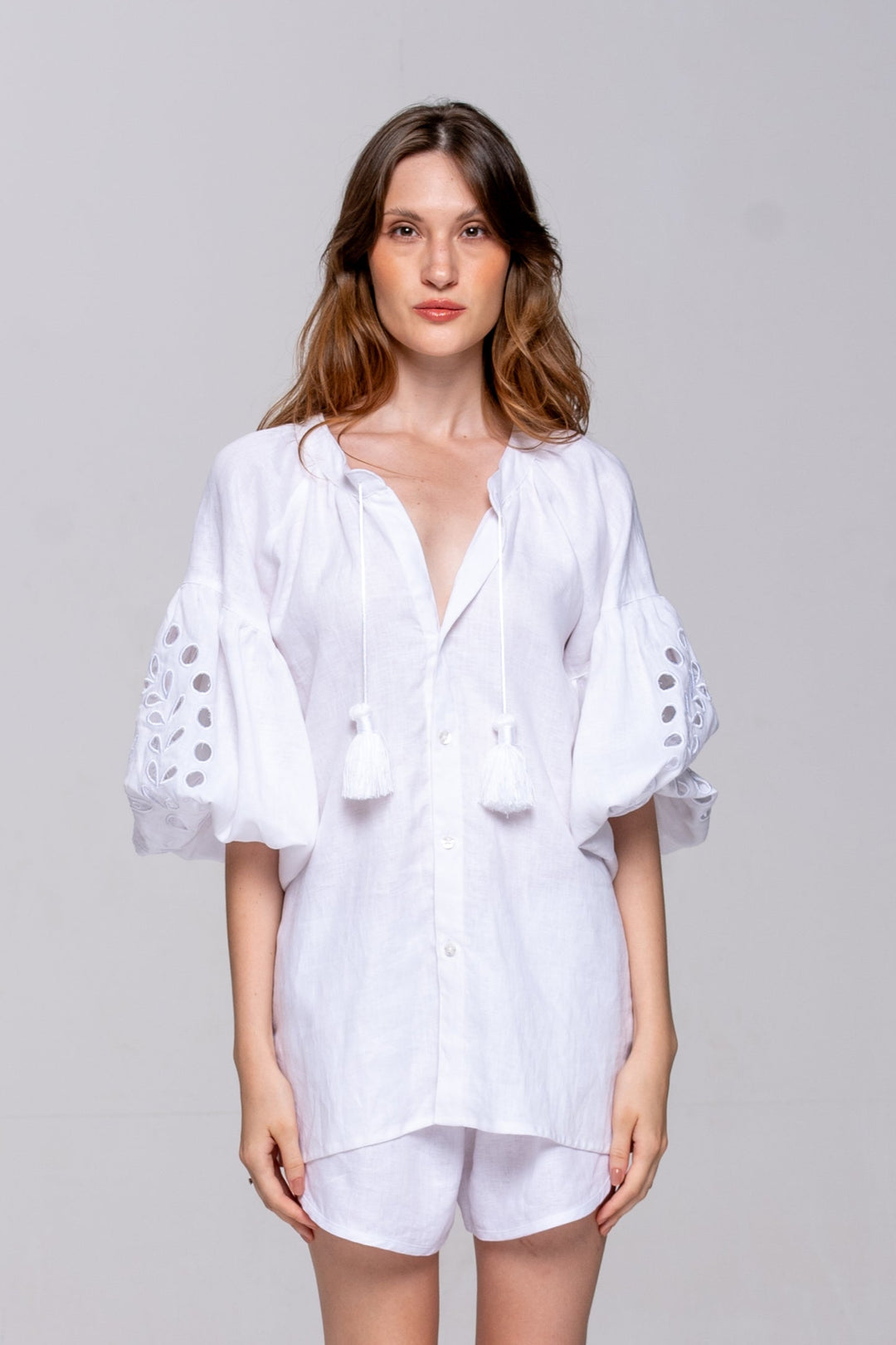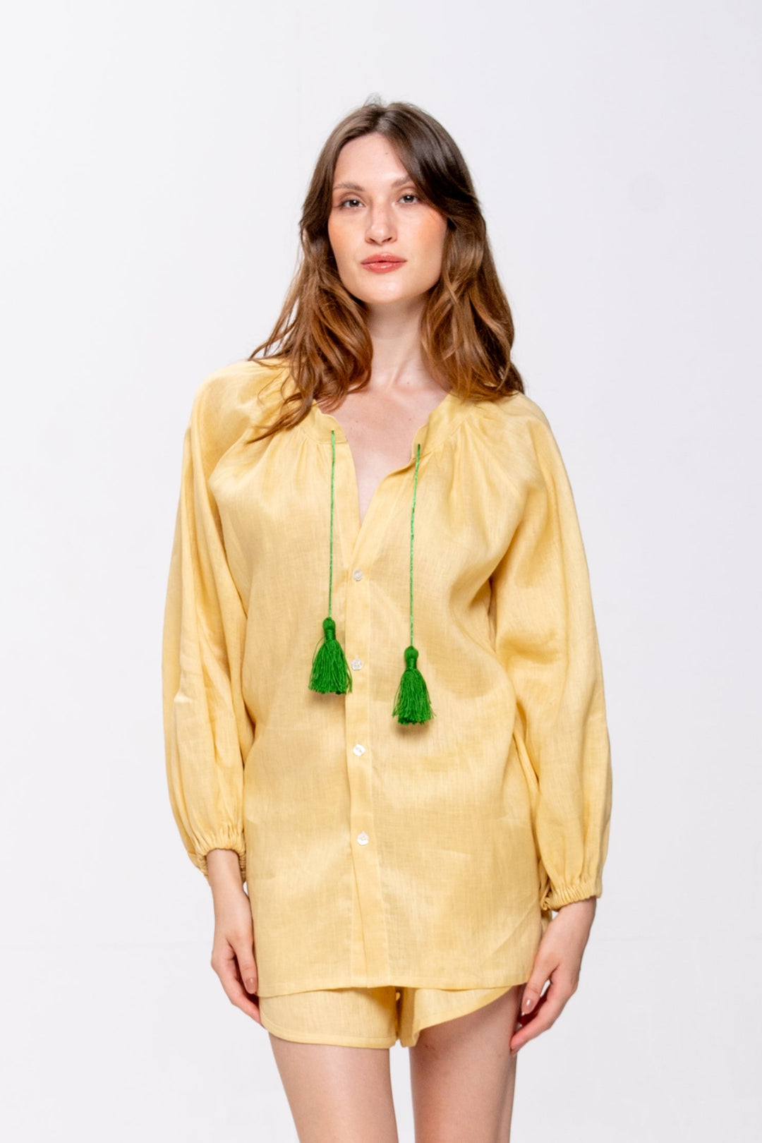 Made from 100% hand-dyed linen gauze. Ideal for sunny days, it combines a relaxed and authentic style, designed for the modern woman.